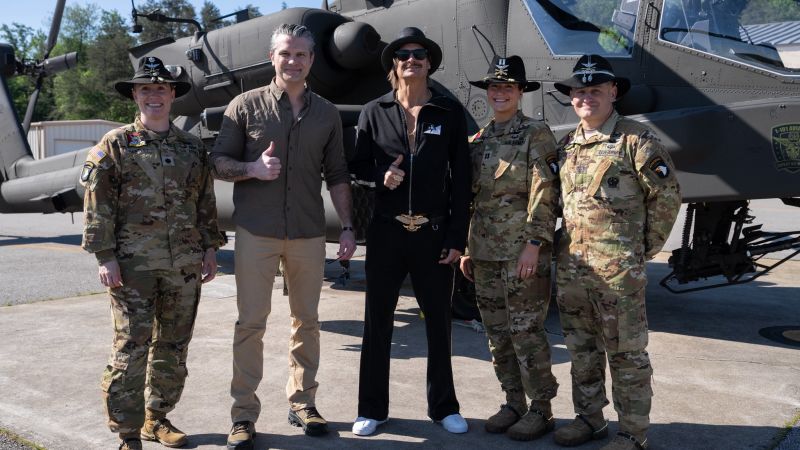 “Kid Rock is a patriot and huge supporter of our troops,” Hegseth wrote on X alongside photos of the two standing in front of an Apache helicopter. “The War Department is wasting no time celebrating America’s 250th — home of the free because of the brave.”